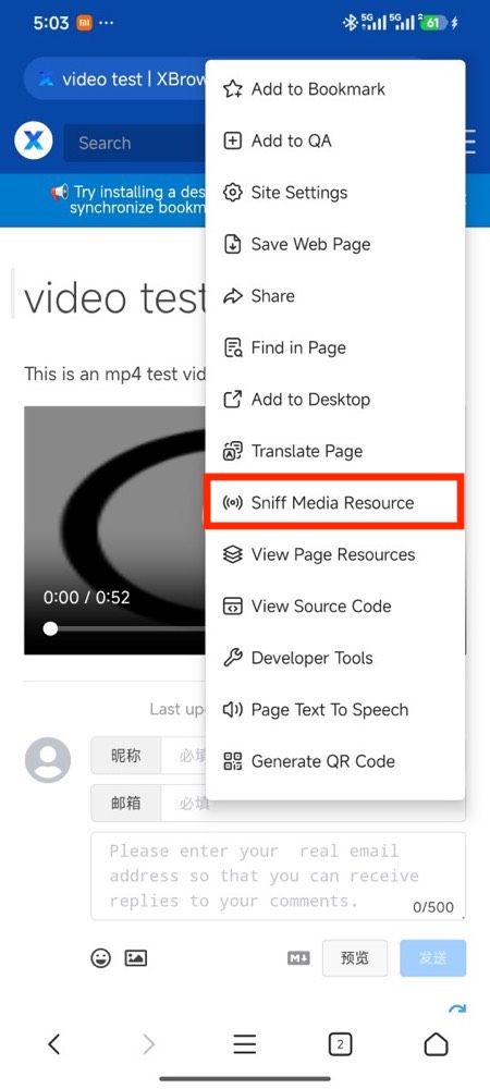 To cast videos playing on web pages to other devices, you first need to find the video address through X Browser’s video sniffing feature.