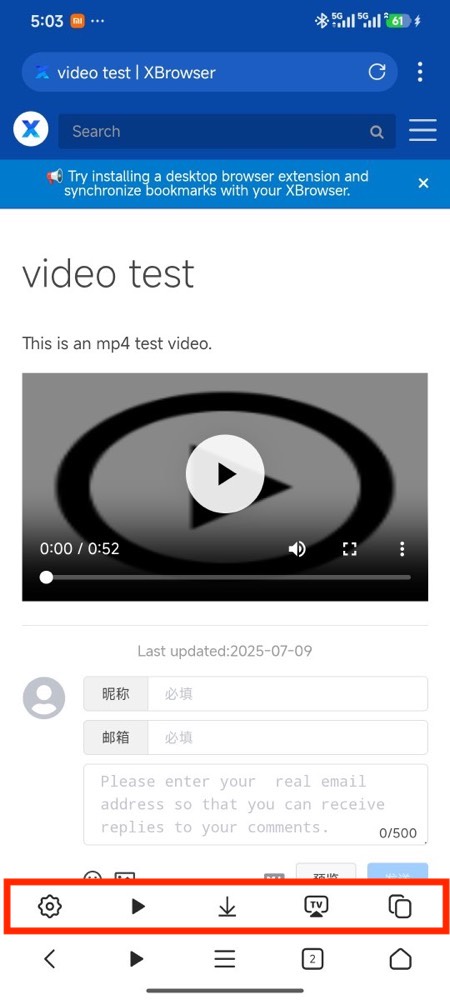 After successfully sniffing the video, a video toolbar will pop up on the page, providing various video operation options.