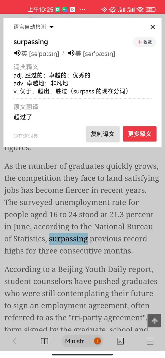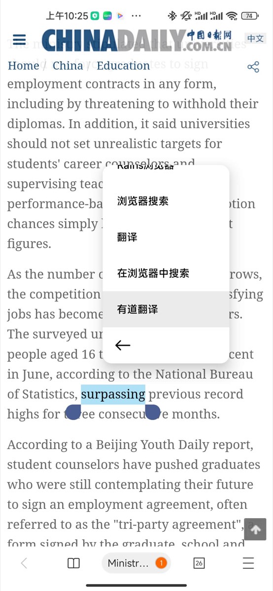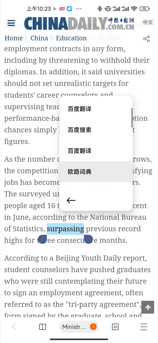 When browsing English websites, some users with English basics prefer to read the original text rather than full translation. When we encounter an unfamiliar word or phrase, we can use dictionary apps to assist with translation.