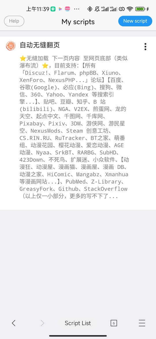 Seamlessly loads next page content to the bottom of the webpage (similar to waterfall flow) ⭐. Currently supports: [All “Discuz!, Flarum, phpBB, Xiuno, XenForo, NexusPHP…” forums] [Baidu, Google, Bing, Sogou, WeChat, 360, Yahoo, Yandex and other search engines…], Tieba, Douban, Zhihu, Bilibili, NGA, V2EX, Jandan, Dragon Sky, Qidian, Qiantu, Qianku, Pixabay, Pixiv, 3DM, Ali213, Gamersky, NexusMods, Steam Workshop, CS.RIN.RU, RuTracker, BT Home, Moe Fansub, Anime Garden, Sakura Anime, Ailian Anime, AGE Anime, Nyaa, SrkBT, RARBG, SubHD, 423Down, Imortal Bird, Extfans, Appinn, [Comic Mania, Comic House, Comic Cat, Comic Home, Comic DB, DMZJ, HiComic, Mangabz, Xmanhua and other comic sites…], PubMed, Z-Library, GreasyFork, Github, StackOverflow…